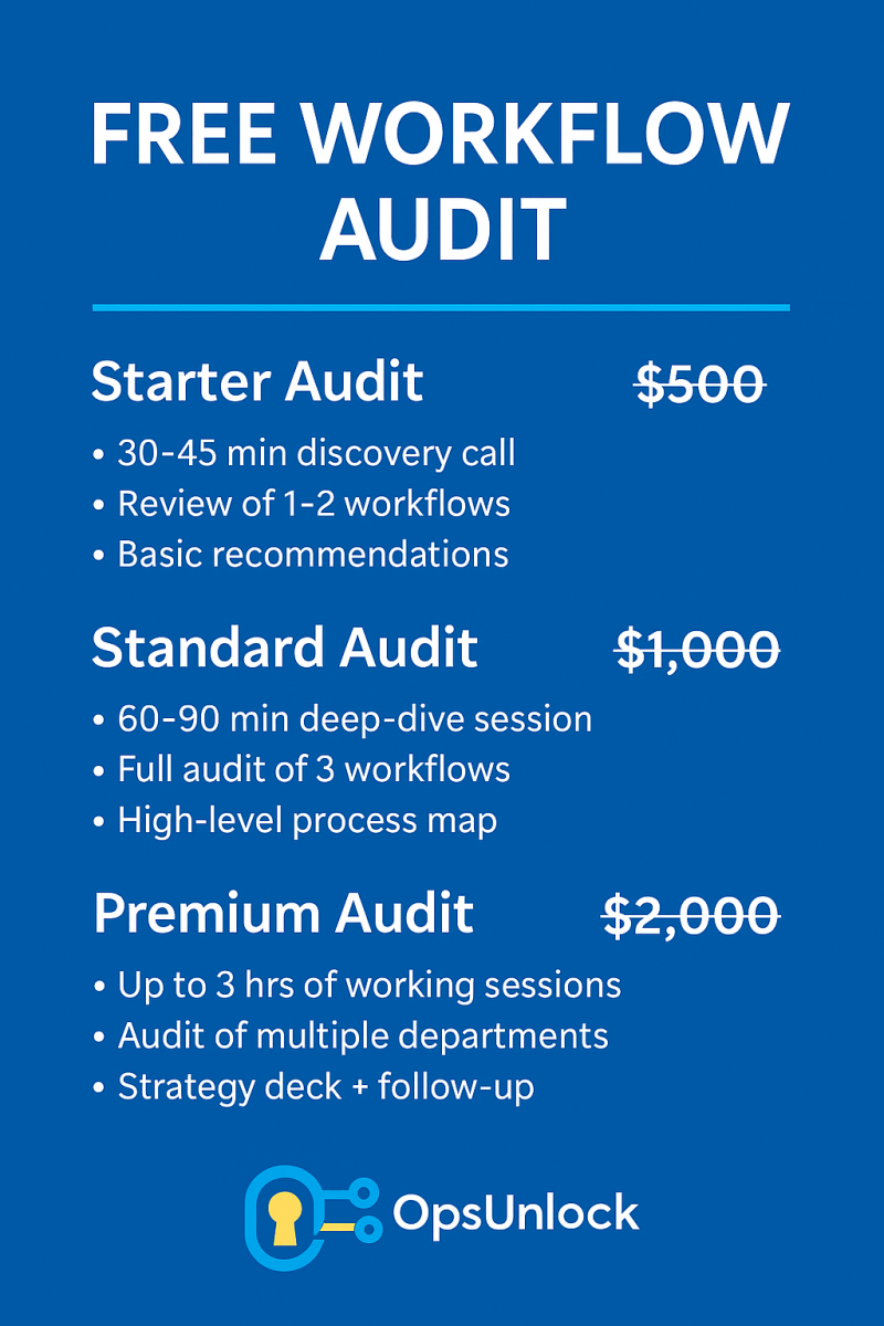 OpsUnlock helps small and medium businesses streamline operations, automate workflows, and build efficient systems—without writing code.